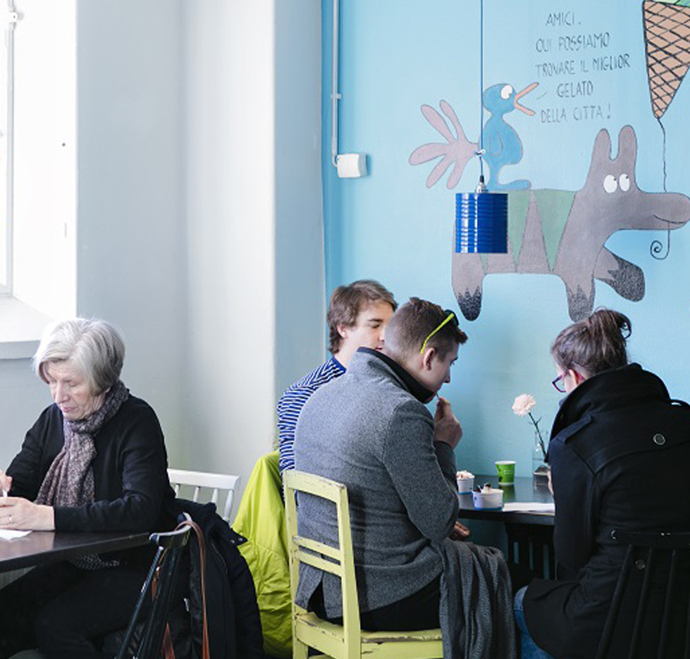 Per ottenere un gelato della massima qualità abbiamo da sempre voluto utilizzare solo le migliori materie prime. Per quanto possibile cerchiamo di utilizzare ingredienti finlandesi locali, come il latte e i vari frutti di bosco. Utilizziamo solo latte e panna freschi di allevamenti finlandesi, mai a lunga conservazione o senza lattosio. Vogliamo che i nostri ingredienti siano poco trattati e più naturali. Per i gelati alla frutta utilizziamo solo vera frutta e sempre nella massima percentuale possibile. Per tutto ciò che non è reperible in zona, ci affidiamo a fornitori esteri per procurarci ingredienti di alta qualità come il pistacchio che ci arriva direttamente da Bronte, la liquirizia dalla Calabria e la nocciola dal Piemonte. Tutto rigorosamente DOP! Preferiamo non badare a spese per le nostre materie prime e avere la certezza di aver utilizzato solo i migliori prodotti per i nostri clienti.